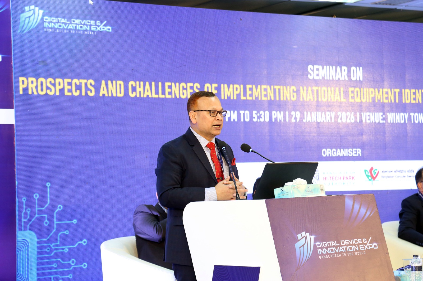 Today, on 29 January , 2026, during the Digital Device and Innovation Expo 2026, Maj Gen Md Nasim Parvez, BSP, ndc, afwc, psc,  Commandant of the Military Institute of Science and Technology (MIST), delivered a keynote address. Starting from January 28 at the Bangladesh-China Friendship Conference Centre the four-day event is being jointly organised by the ICT Division, the Bangladesh Hi-Tech Park Authority (BHTPA), and the Bangladesh Computer Samity (BCS).